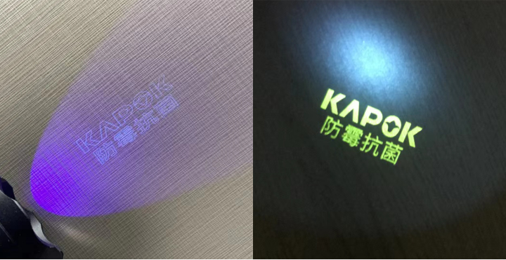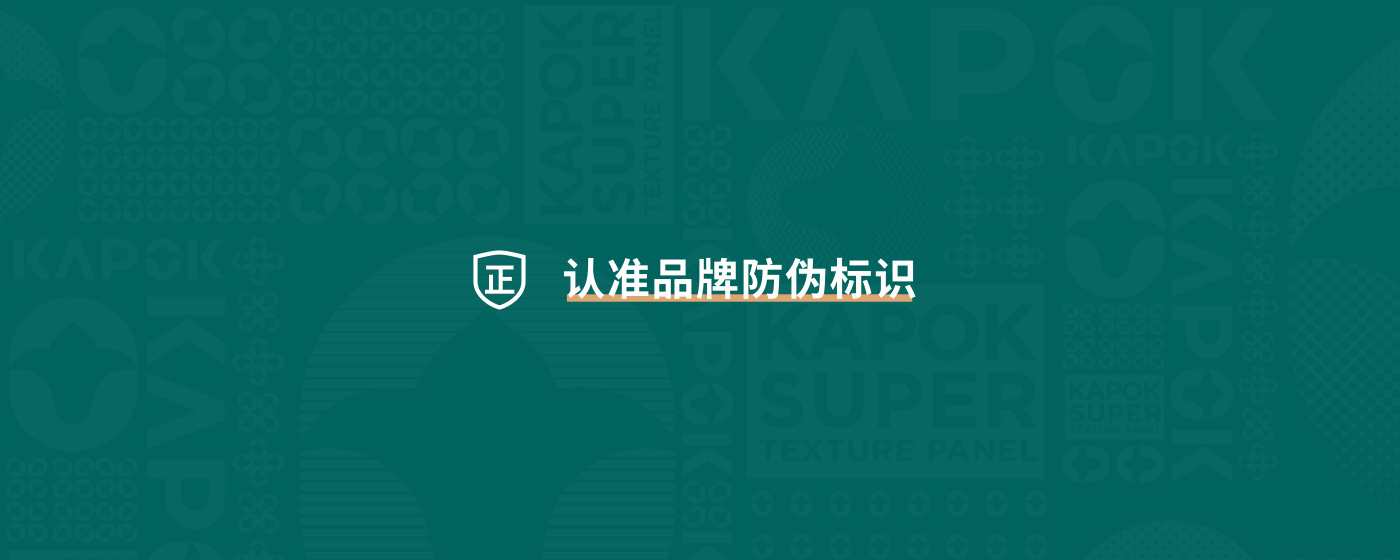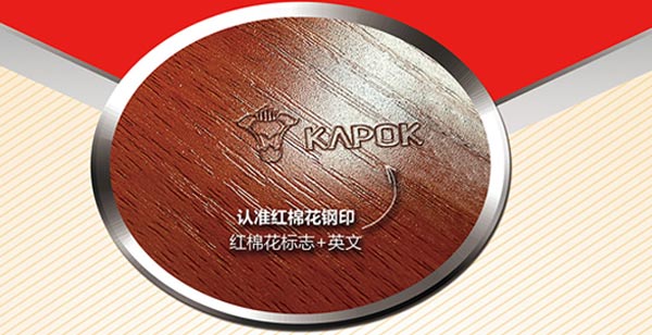 所有红棉花饰面板,均有红棉花专属激光防伪LOGO:KAPOK或KAPOK+防霉抗菌